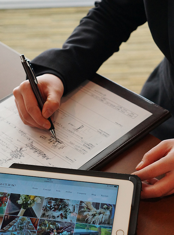- カウンセリングの内容をもとに季節を考慮した花材の仕入れを行ないます。
